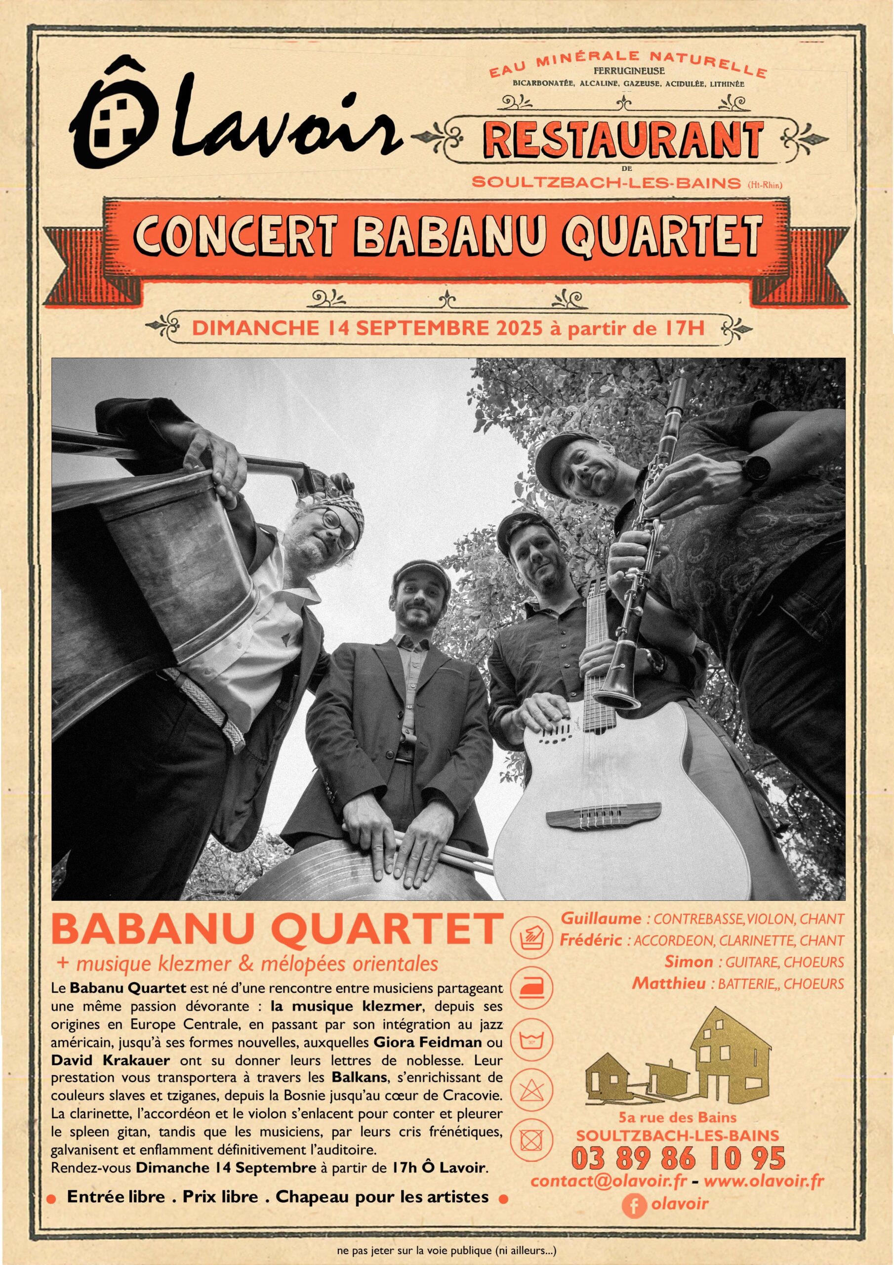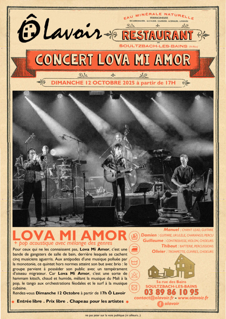 Les lavandières venaient y laver leur linge. Aujourd’hui, pour redonner vie à cet endroit emblématique de la commune de Soultzbach-les-bains, 4 amis de différents horizons s’emploient à faire vivre un restaurant, un bar et une animation culturelle pour les amoureux du patrimoine, de la commune et des environs, en proposant des moments conviviaux, une restauration de qualité avec des produits bio et locaux, et un savoir-faire en rapport: spécialités culinaires et bières artisanales.